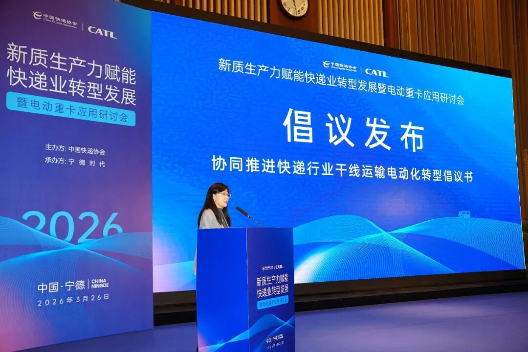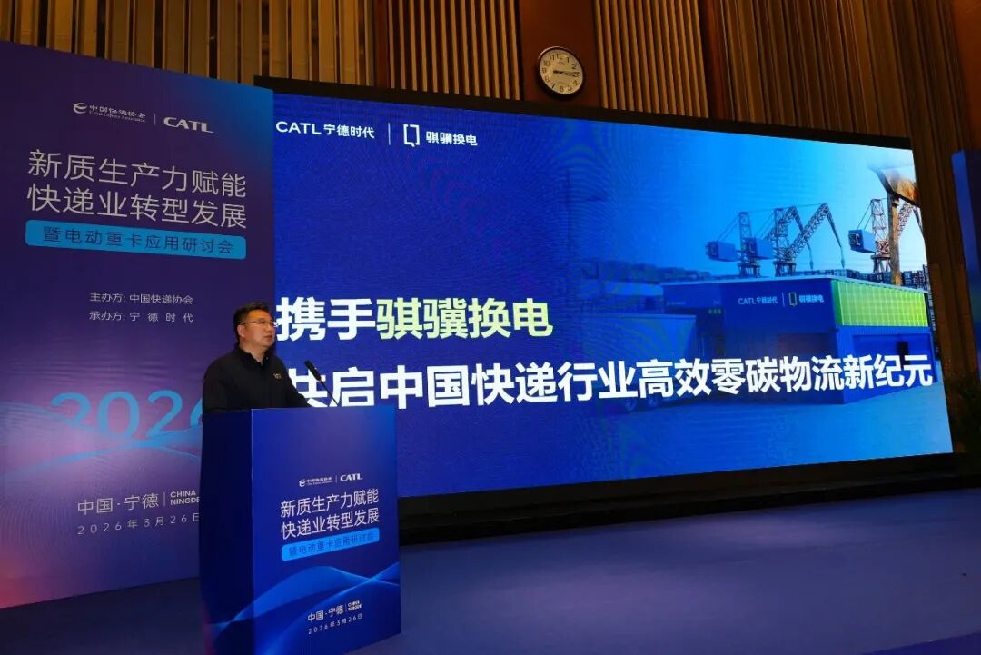 为深入贯彻国家 “双碳” 战略、交通强国建设与物流降本增效工作部署,加快推动快递干线运输绿色低碳、智能高效转型,近日,由中国快递协会主办、宁德时代承办的新质生产力赋能快递业转型发展暨电动重卡应用研讨会在福建宁德成功举行。本次会议汇聚政府相关部门、行业协会、快递物流企业、主流整车制造企业、电池能源企业、充换电及能源服务机构等全产业链代表,共商电动重卡规模化应用路径,共解行业转型痛点难题,共筑快递干线零碳运输产业新生态,为我国快递物流业高质量发展注入强劲动能。