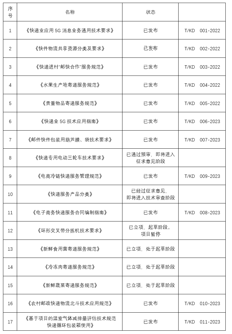 中国快递协会团体标准目录