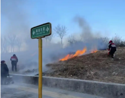 1月10日,通州区颐瑞东路旁的一处草坡突发火情。1月10日下午4点左右,通州区顺丰环球影城营业网点内一切如常,快递员李雪冬正和同事分拣包裹。突然,一位女士带着孩子匆匆赶来询问:“你们这儿有灭火器吗?那边草坡着火了。”